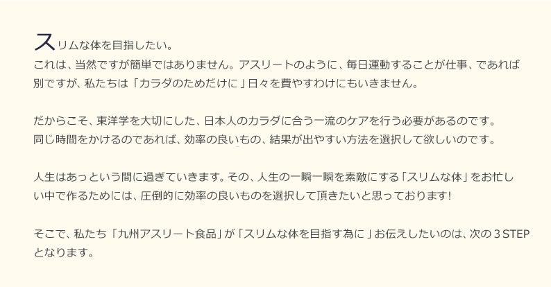 (九州アスリート食品は、カラダの全てにおいてこの考えを大切にしています)