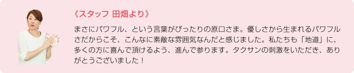 そんな原口さまに、パワフルの秘訣をお聞きしてきました!