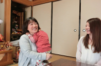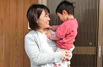 ▲恥ずかしがり屋の息子さんを、優しくなだめる楠井様。
