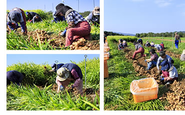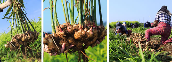 土の中から収穫するからこそ、この最後の段階でどれだけ大切に取り出してあげるかで、生姜の質に影響を与えると感じています。農家さんたちが黙々とではありますが、微笑みながら作業されている様子を拝見すると、本当に生姜への愛を感じられます。