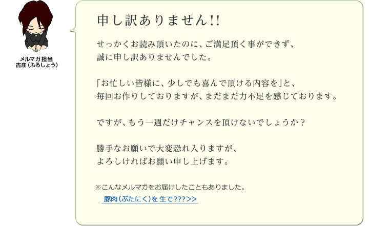 ※お読み頂いている「九食通信」は、会員様限定のメールマガジンでございます。