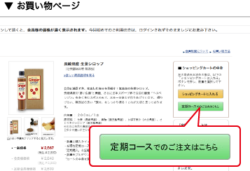 ページが変わり、右にショッピングカートが出て来ます。その中に「定期コースでのご注文はこちら」ボタンがありますので、クリックして下さい。
