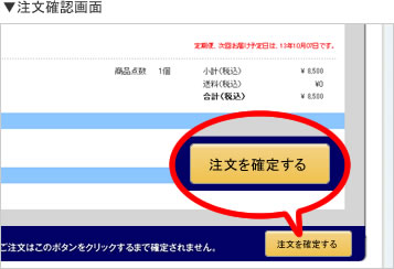ご注文確認画面へ進み、ご注文内容をご確認下さい。内容に間違いがございませんでしたら、「ご注文を確定する」ボタンを押します。