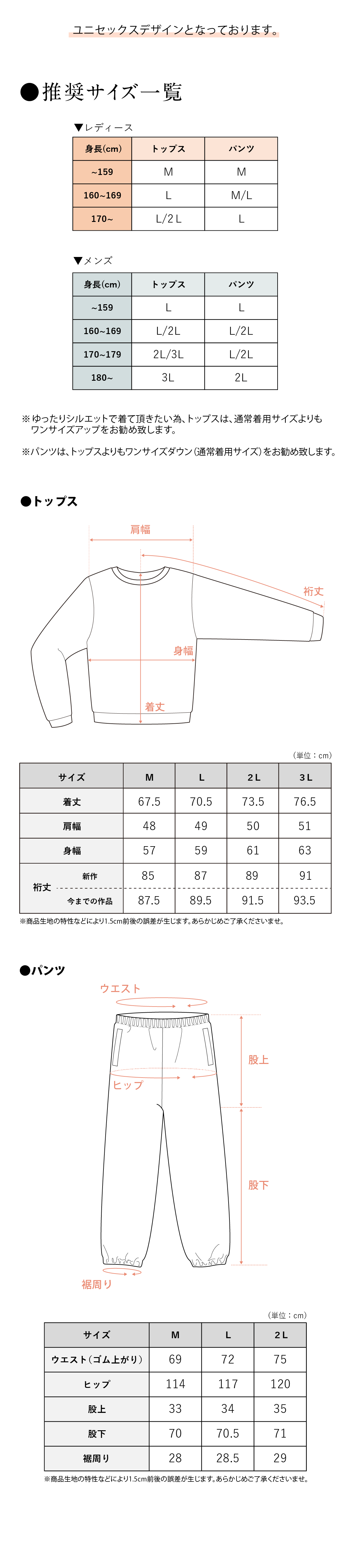 ※ユニセックスデザインです。 サイズガイドはこちら