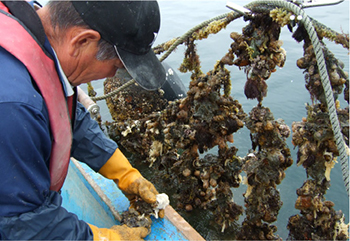 タイミング命の生き物なのです。これを牡蠣職人と呼ばれる人たちがこの地に伝えられる方法で見計らい、収穫を行います。この道50年という人たちが海を見ている、これも濃厚さを保つ秘訣です。
